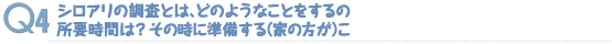 通常は和室の畳を2枚程度上げるか、台所等の床下収納庫より床下に入り、シロアリの被害を中心に、湿気・カビ・腐朽・水漏れ等の床下状況を専門家が調べます。所要時間は大体30分程度です。家の方が事前に準備することはありませんが、床下に入る所(1階の和室または台所等の床下収納庫など)の物の整理等をお願いするのが一般的で、調査がスムーズになり時間も短くて済みます。※調査費用は有料 |
