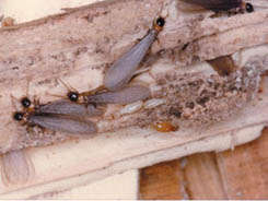 シロアリは地中から蟻道を作って建物の木材内部へ侵入してくることが多く、土台や柱、床束などが食害されます。そうなると柱が傾いてきたり、浮いてきたりして台風や地震の際に思わぬ被害を受けることもあり、大変危険です。 |